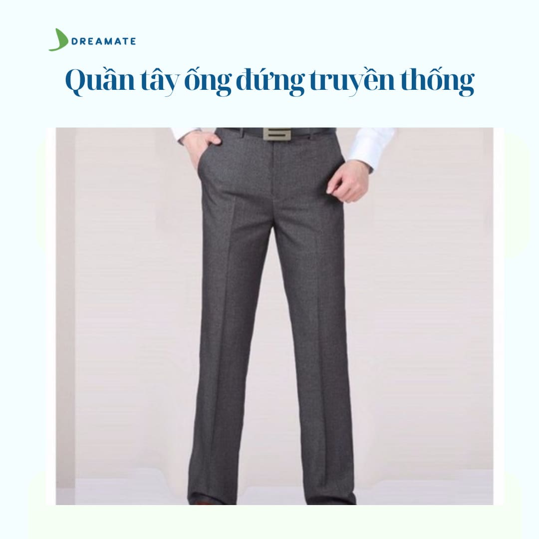 Quần tây ống đứng truyền thống: Đây là kiểu quần với ống quần suôn thẳng từ hông xuống, tạo cảm giác trang nhã và chuyên nghiệp. Mẫu quần này phù hợp với nhiều dáng người và dễ dàng kết hợp với áo sơ mi hoặc áo vest.