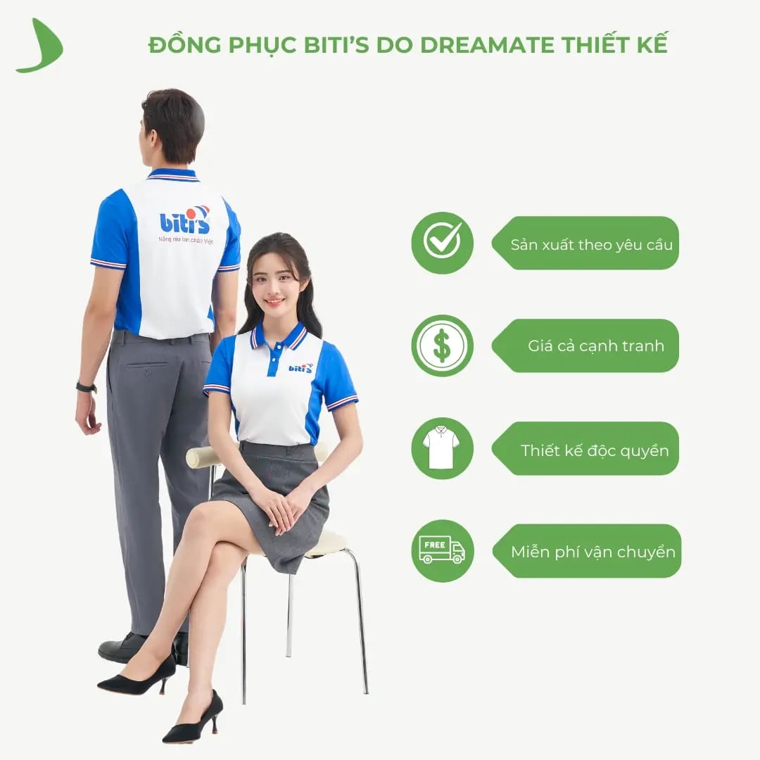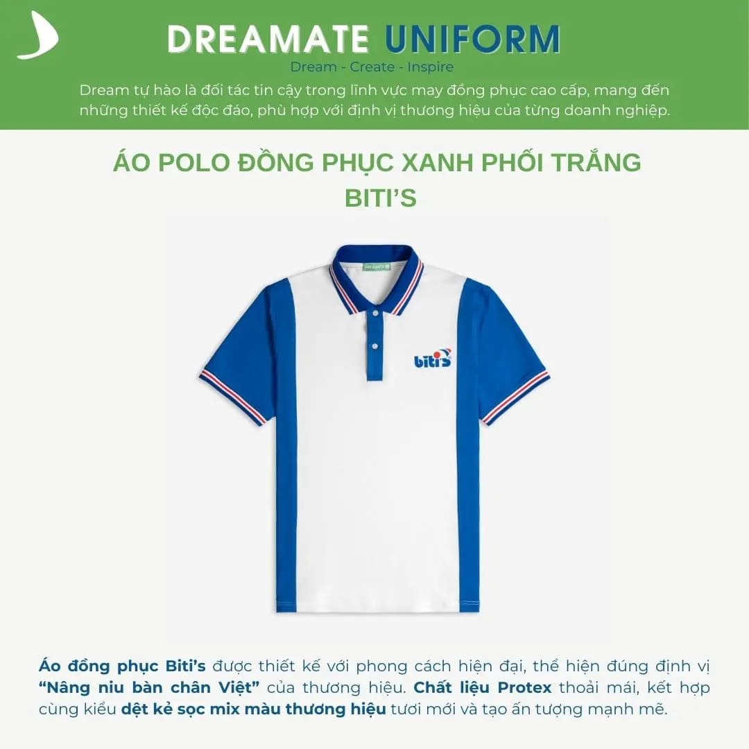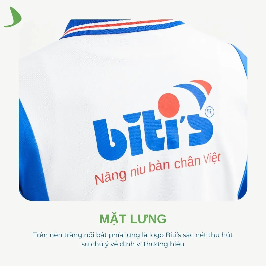 Đồng phục dành cho Biti's được Dreamate thiết kế với phong cách hiện đại, thể hiện đúng định vị " Nâng niu bàn chân Việt" của thương hiệu. Chất liệu bo protex bóng đẹp, co giãn và bền bỉ, phù hợp cho những hoạt động hàng ngày, kết hợp cùng kiểu dệt kẻ sọc mix màu thương hiệu mang đến sự tươi mới và tạo ấn tượng mạnh mẽ.