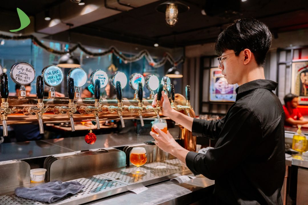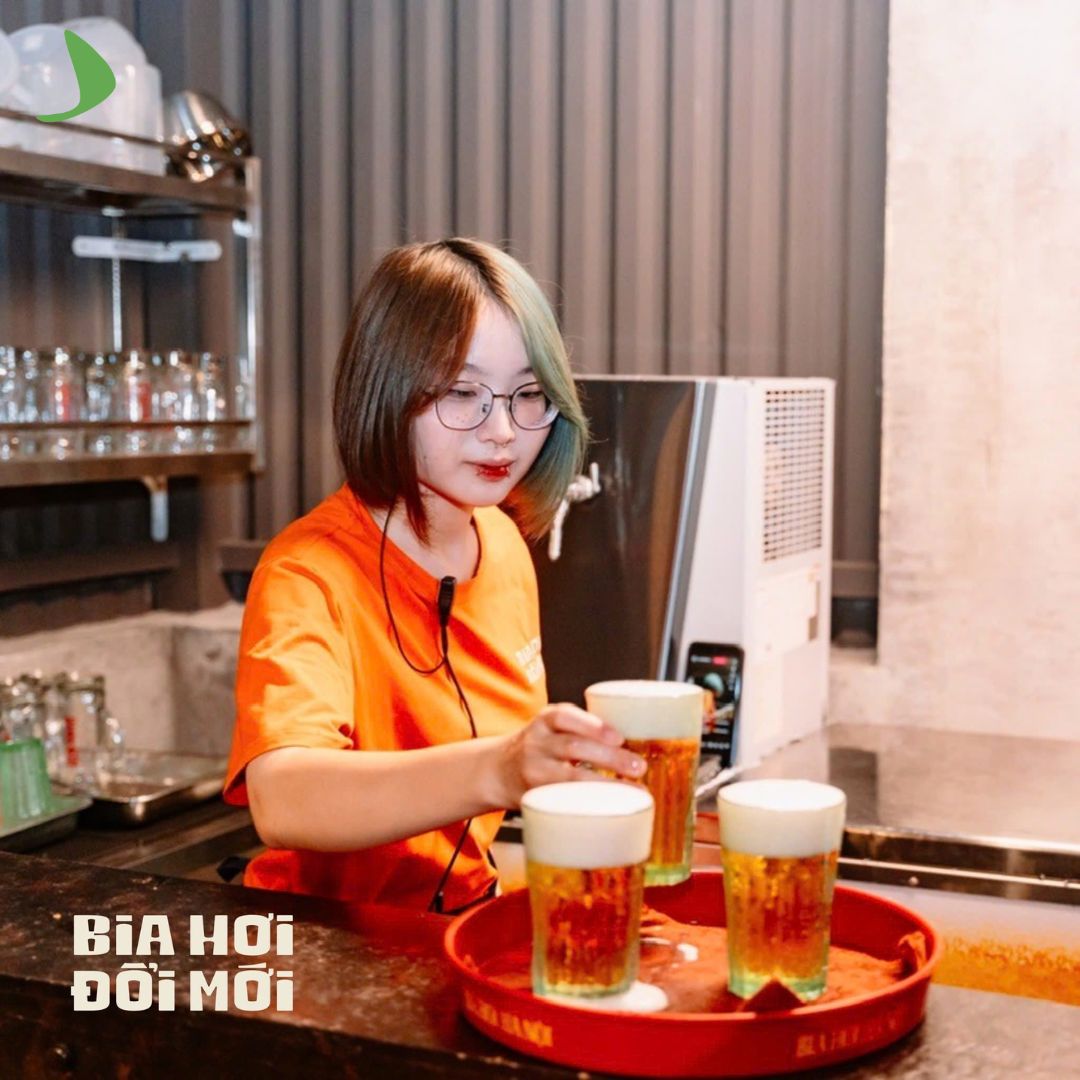 Thay vì những chiếc áo sơ mi cứng nhắc, các quán bia hiện nay ưa chuộng thiết kế áo thun polo hoặc áo thun cổ tròn thoải mái nhưng vẫn lịch sự. Màu sắc đơn giản, phối logo thương hiệu tinh tế giúp tạo ấn tượng chuyên nghiệp mà không gò bó.
