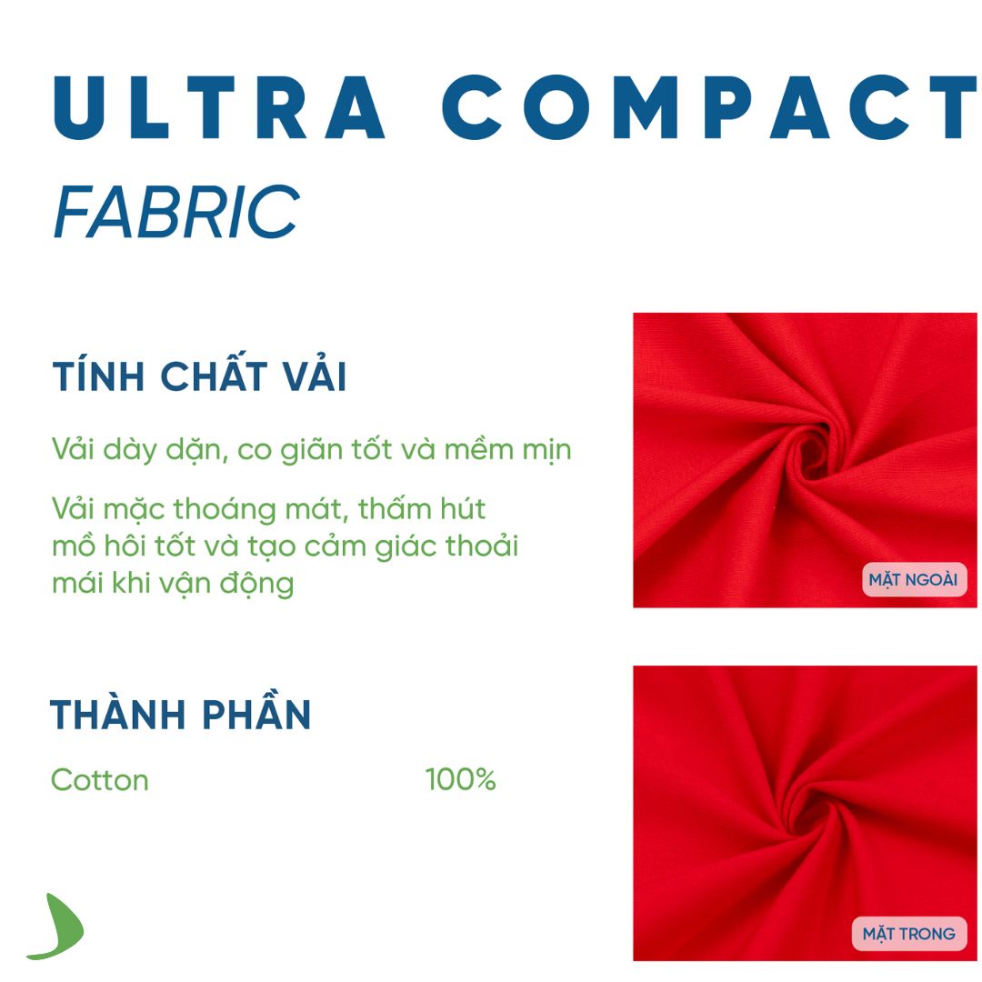 Ultra Compact là sự kết hợp giữa công nghệ xử lý Enzym bề mặt tiên tiến và sợi Spandex cao cấp, tạo nên một loại vải có độ co giãn 4 chiều, giữ phom tốt và cực kỳ bền màu. Đây là chất liệu lý tưởng cho những mẫu áo thun đồng phục quán bia yêu cầu tính thẩm mỹ cao, vừa đảm bảo sự thoải mái khi mặc vừa giữ được vẻ ngoài chỉnh chu suốt thời gian dài.