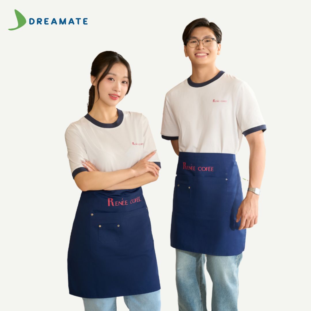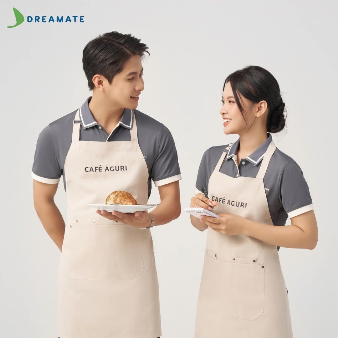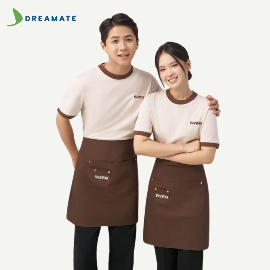 Dreamate tự hào là đơn vị đồng hành cùng các quán trà sữa, nhà hàng, quán cà phê với dịch vụ may tạp dề chất lượng, thiết kế miễn phí, giúp thương hiệu của bạn chuyên nghiệp hơn và thu hút khách hàng. Với kinh nghiệm sản xuất đồng phục quy mô lớn, Dreamate cam kết mang đến sản phẩm hoàn hảo với giá thành hợp lý.