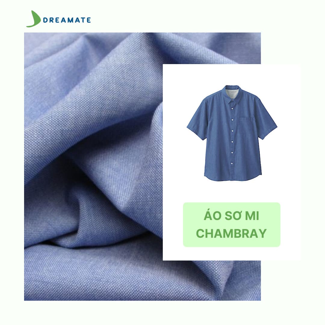 Chambray là loại vải được sản xuất từ sợi cotton, thường có bề mặt giống denim nhưng nhẹ hơn. Đây là lựa chọn lý tưởng cho những ai yêu thích phong cách casual nhưng vẫn muốn giữ được nét thanh lịch.
