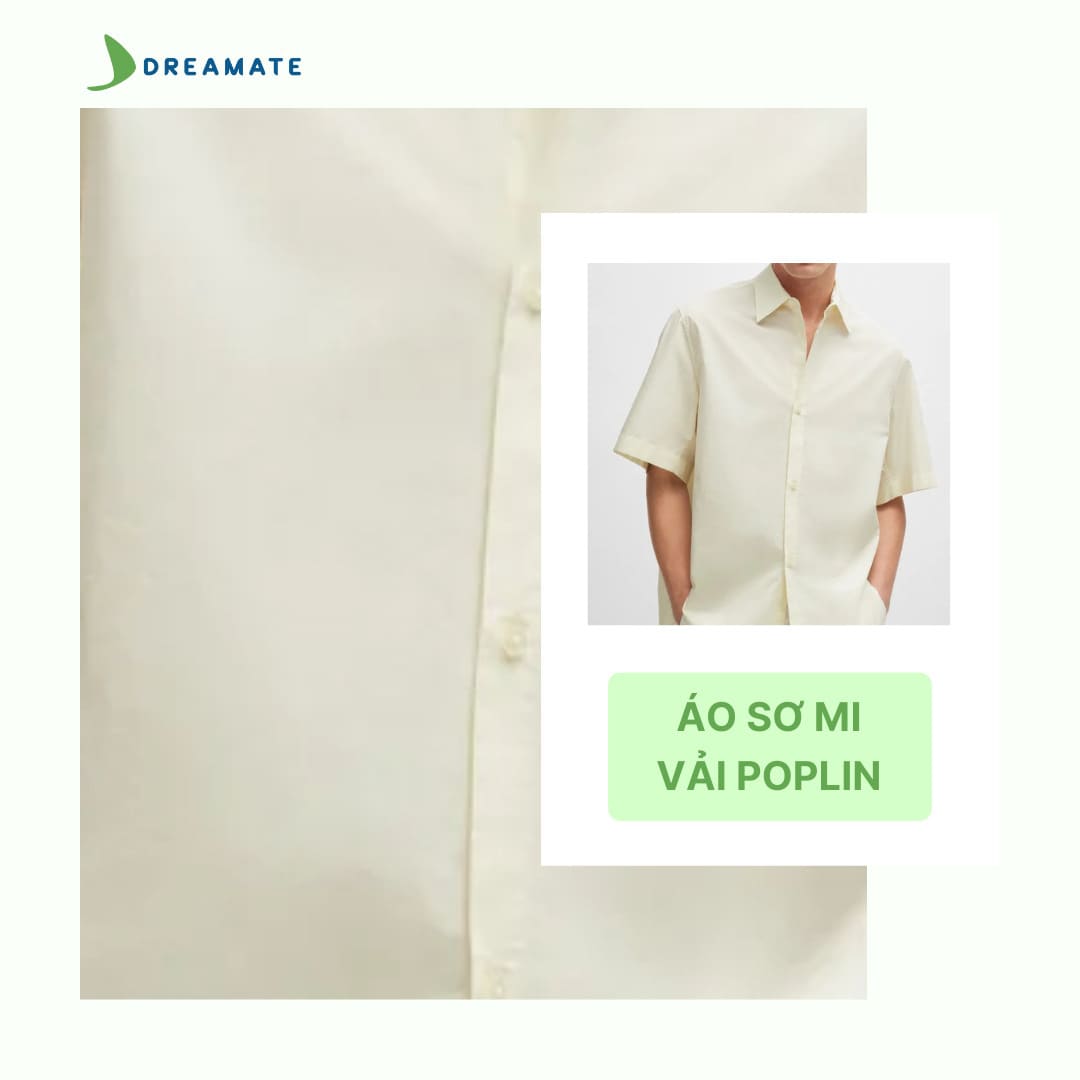 Poplin là loại vải nhẹ, mềm và có độ bóng nhẹ, thường được ưa chuộng trong mùa hè. Đây là lựa chọn hoàn hảo cho những ai cần một chiếc áo sơ mi đơn giản nhưng tinh tế.