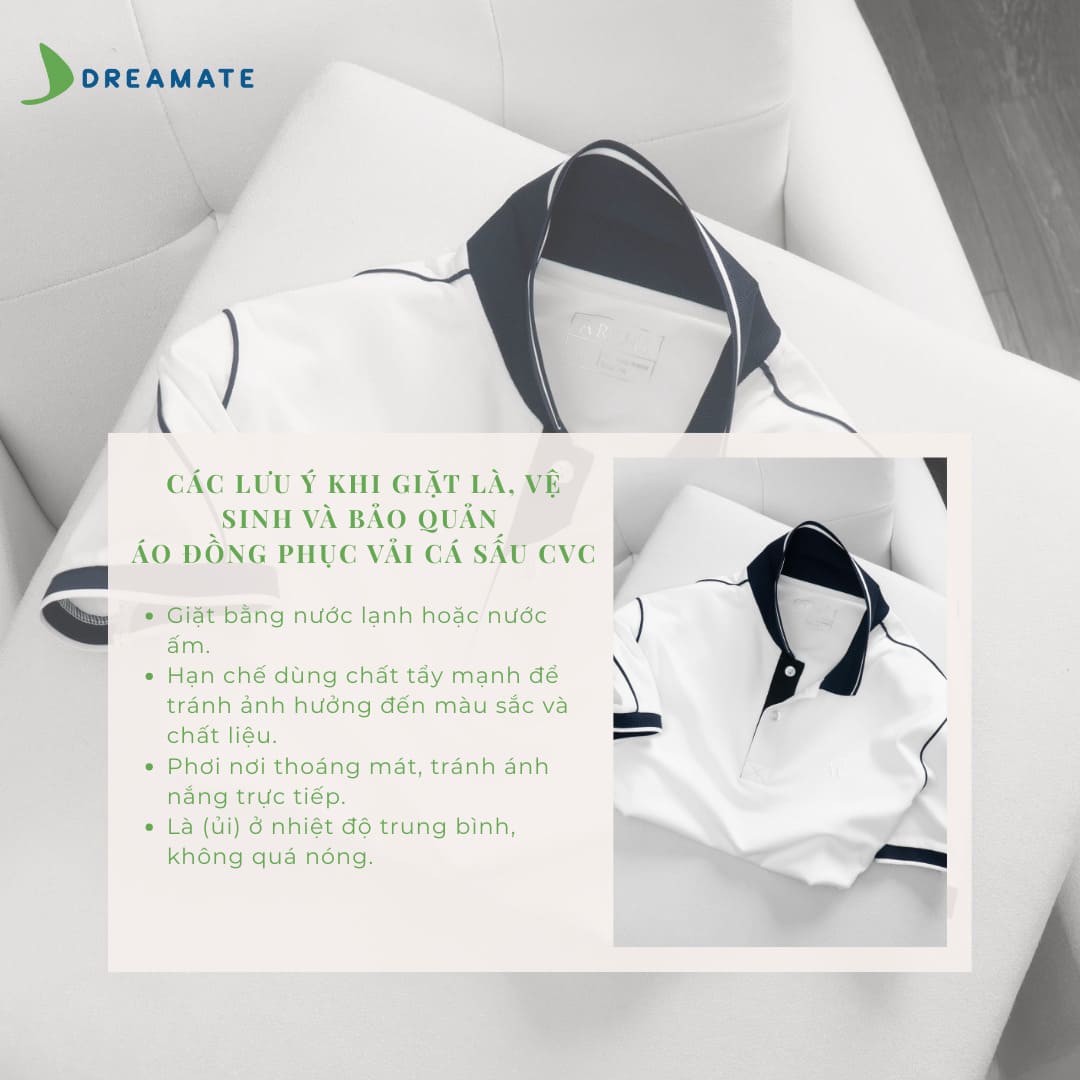 Khi giặt áo đồng phục từ vải cá sấu CVC, bạn nên sử dụng nước lạnh hoặc ấm để bảo vệ chất liệu. Hạn chế sử dụng nước nóng vì nó có thể làm giảm tuổi thọ của vải.