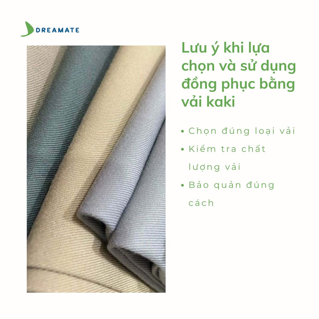 Nếu bạn có nhu cầu thiết kế áo đồng phục bằng vải kaki, bạn có thể liên hệ xem trực tiếp mẫu vải, mẫu áo kaki tại showroom trưng bày của Dreamate để được tư vấn miễn phí.