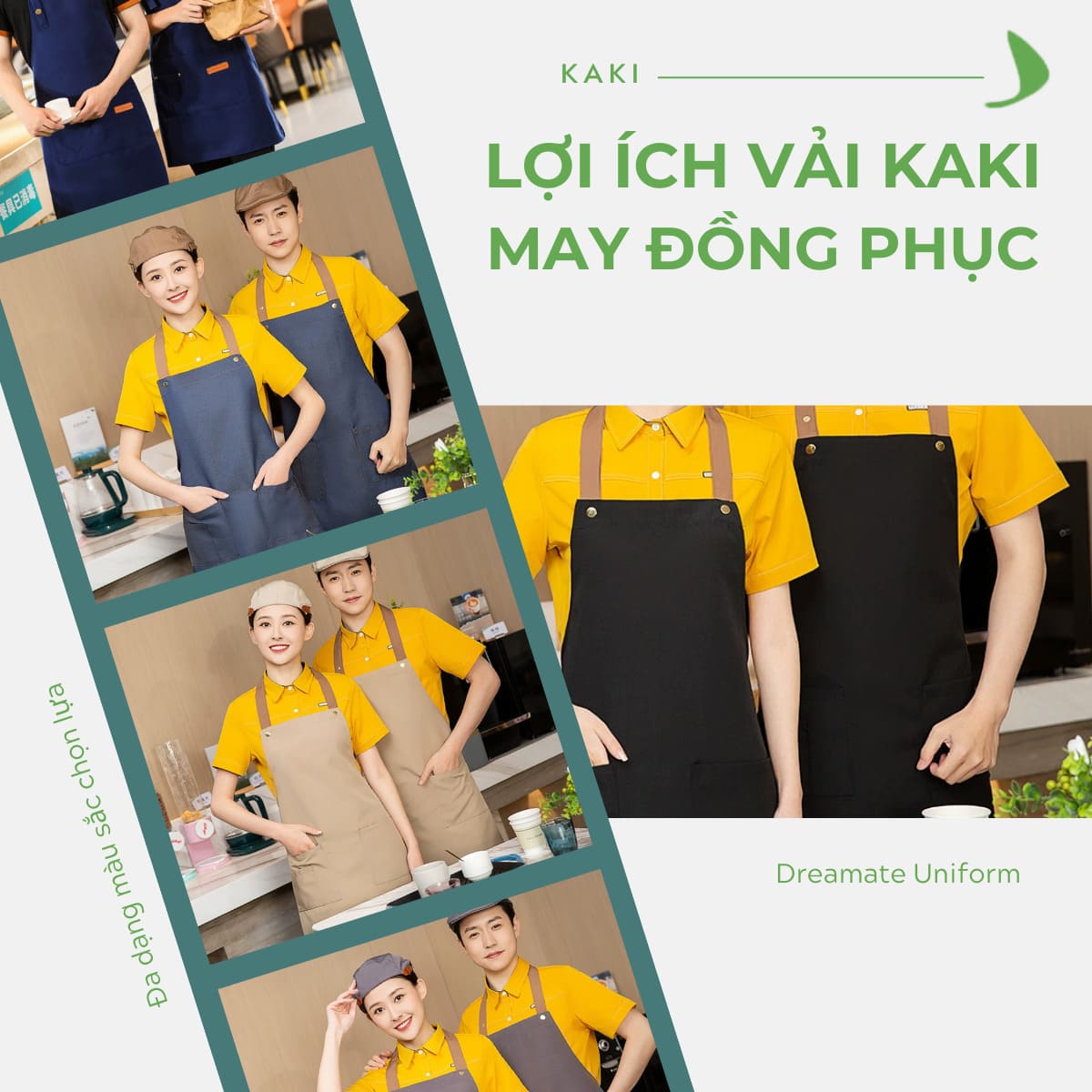 Dreamate cung cấp các sản phẩm tạp dề FnB chất lượng cao từ vải kaki, với hai loại vải kaki chủ đạo là Airdura và Duramax. Hai loại vải này đều phù hợp cho việc may tạp dề và mũ.