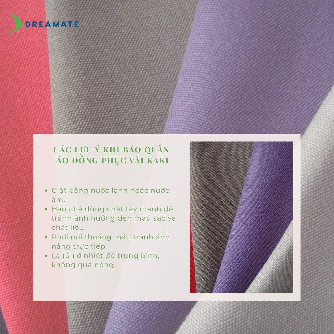 Vải kaki rất dễ bảo quản và giặt giũ, không cần quá nhiều công sức để duy trì độ bền và vẻ đẹp của sản phẩm. Bên cạnh đó, khả năng dễ nhuộm của vải kaki cho phép doanh nghiệp tạo ra nhiều màu sắc và kiểu dáng đa dạng cho đồng phục.
