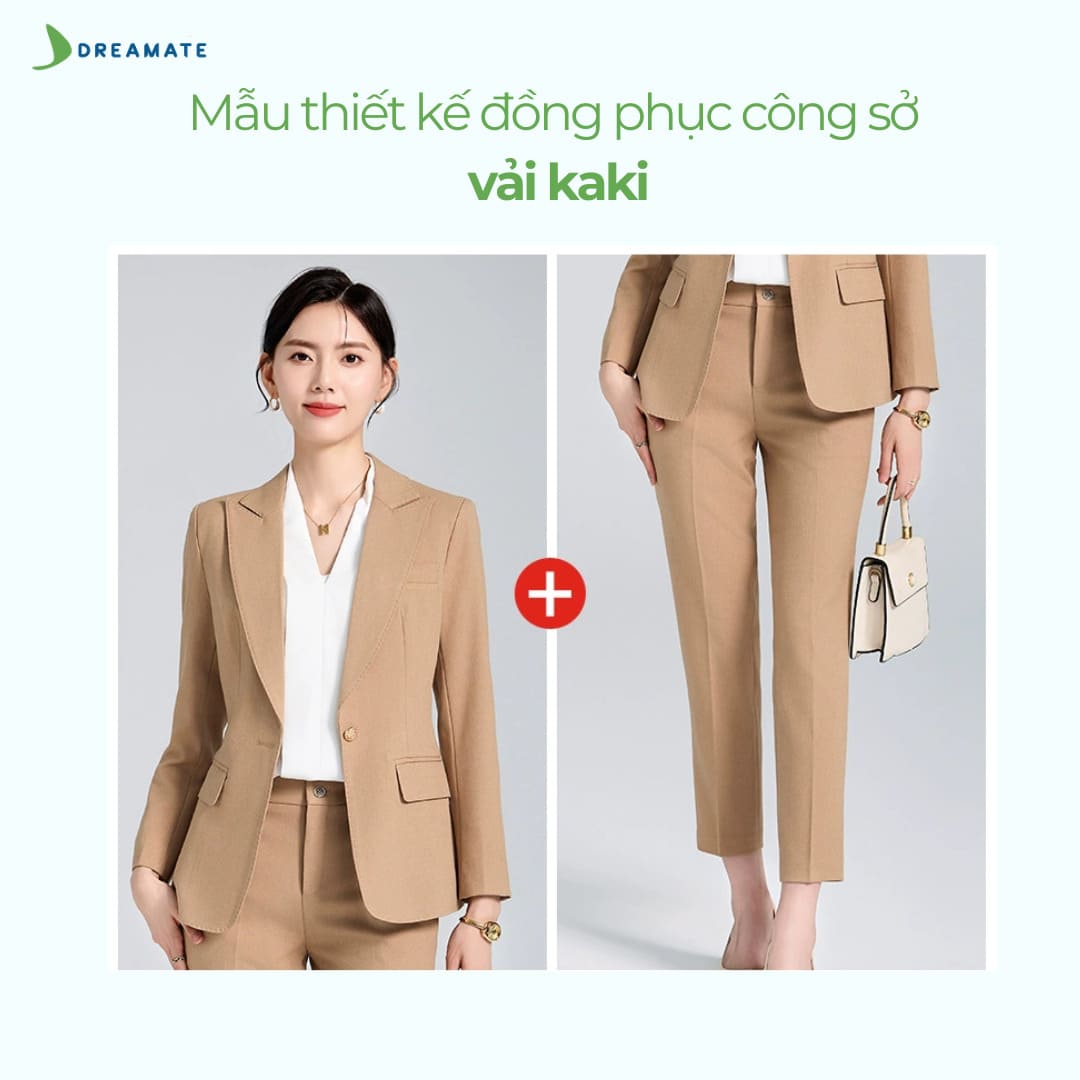 Có rất nhiều loại vải kaki phù hợp để may đồng phục công sở. Kaki cotton mềm mại, thoáng mát, thích hợp cho quần tây, chân váy, vest nữ. Kaki lụa sang trọng, mềm mịn, tạo vẻ thanh lịch cho vest và blazer. Kaki thun có độ co giãn tốt, giúp di chuyển linh hoạt, lý tưởng cho quần tây và chân váy. Tùy nhu cầu mà doanh nghiệp chọn loại vải phù hợp để đảm bảo sự thoải mái và chuyên nghiệp.