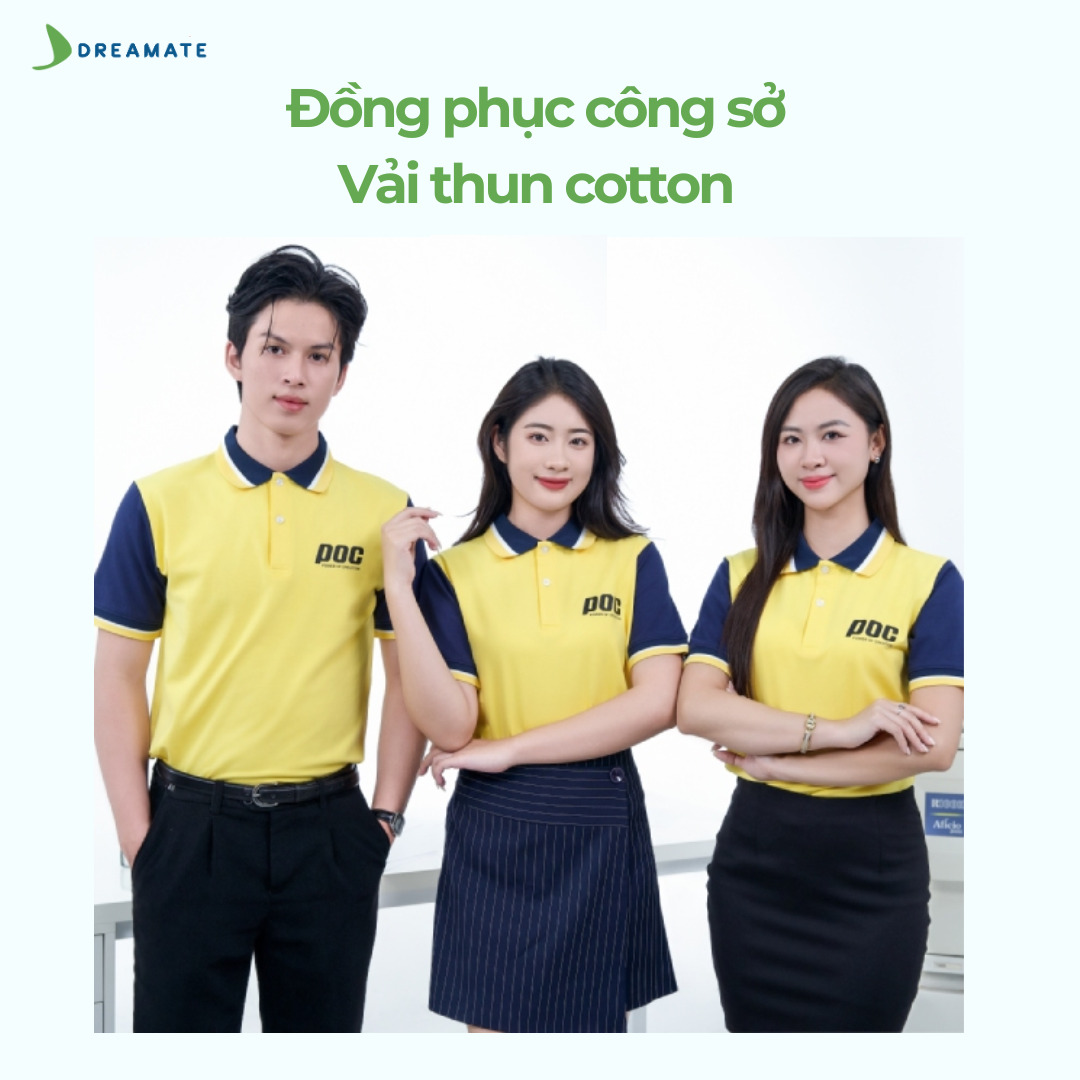 Với môi trường văn phòng, các loại đồng phục cần đảm bảo sự lịch sự, thoải mái nhưng vẫn giữ được vẻ chuyên nghiệp. Các chất liệu như cotton 100% hoặc cotton CVC (65% cotton, 35% polyester) thường được lựa chọn vì có bề mặt vải mịn, thoáng khí, ít nhăn và giữ form tốt. Những loại vải này không chỉ giúp nhân viên cảm thấy dễ chịu khi mặc cả ngày mà còn giúp doanh nghiệp xây dựng hình ảnh chỉn chu, chuyên nghiệp.