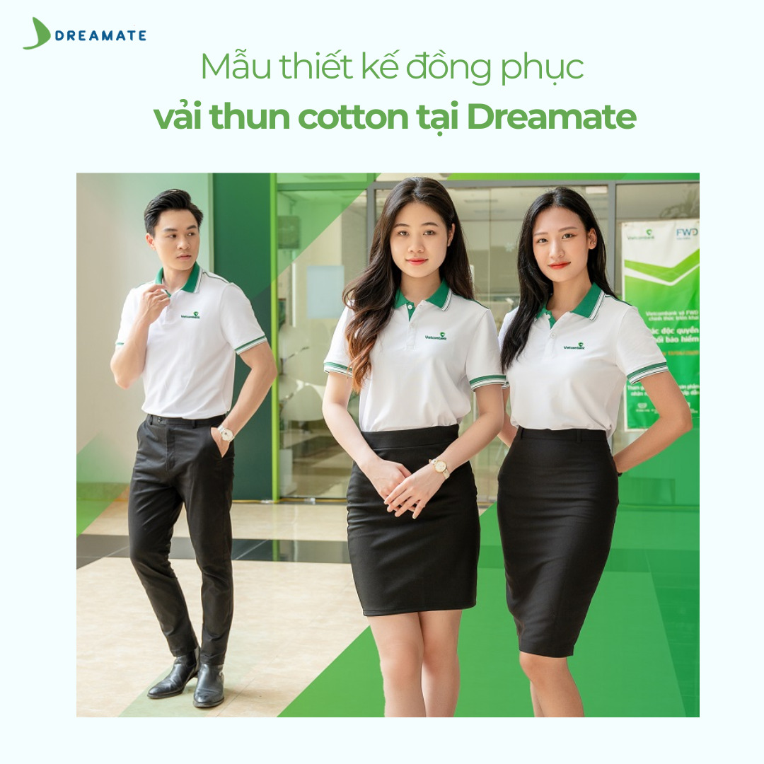 Khi nhắc đến việc thiết kế và sản xuất đồng phục vải thun cotton, Dreamate là một trong những địa chỉ đáng tin cậy. Với đội ngũ thiết kế chuyên nghiệp và kinh nghiệm dày dạn trong ngành may mặc, cùng đội ngũ thợ may lành nghề với quy trình sản xuất tỉ mỉ, Dreamate cam kết mang đến những sản phẩm chất lượng cao với giá cả phải chăng.