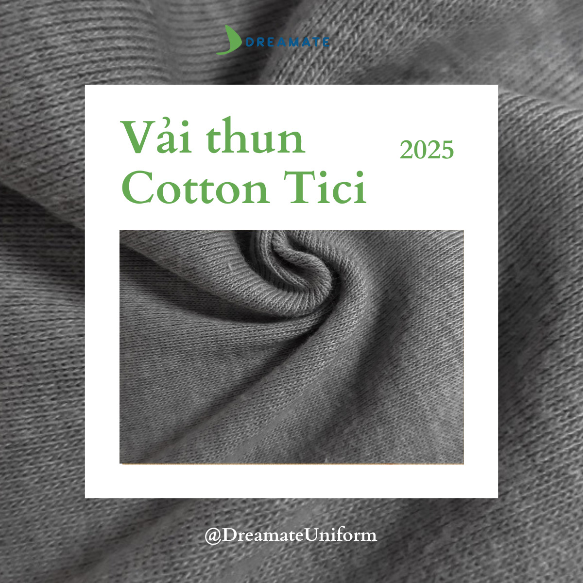 Một loại Cotton khác là Cotton Tici (35/65), được làm từ 35% cotton và 65% PE, cotton Tici nổi bật với độ bóng, sự mịn màng, thoáng khí và ít bám bụi. Đây là lựa chọn tuyệt vời cho quần áo thể thao hoặc trang phục hằng ngày.
